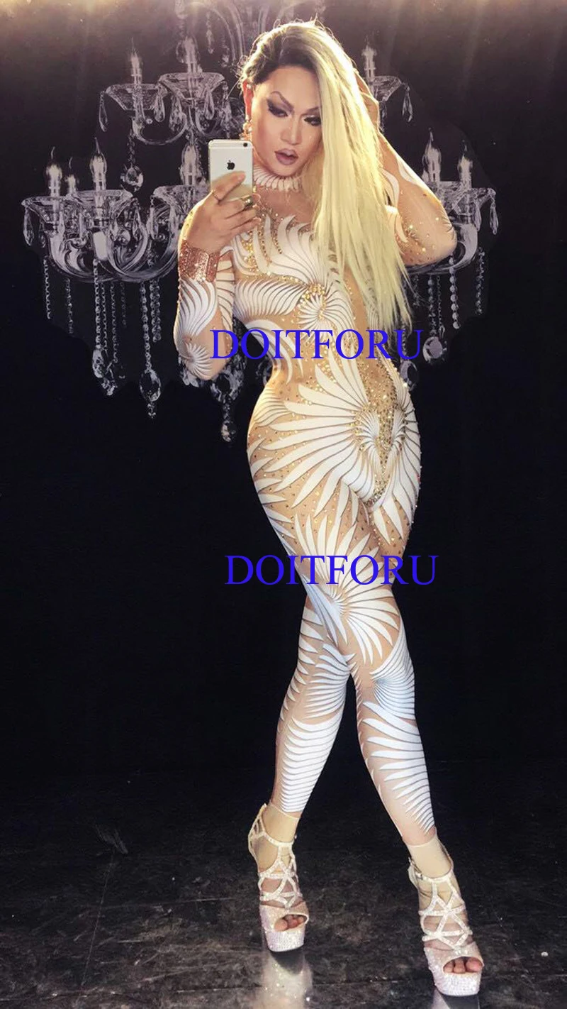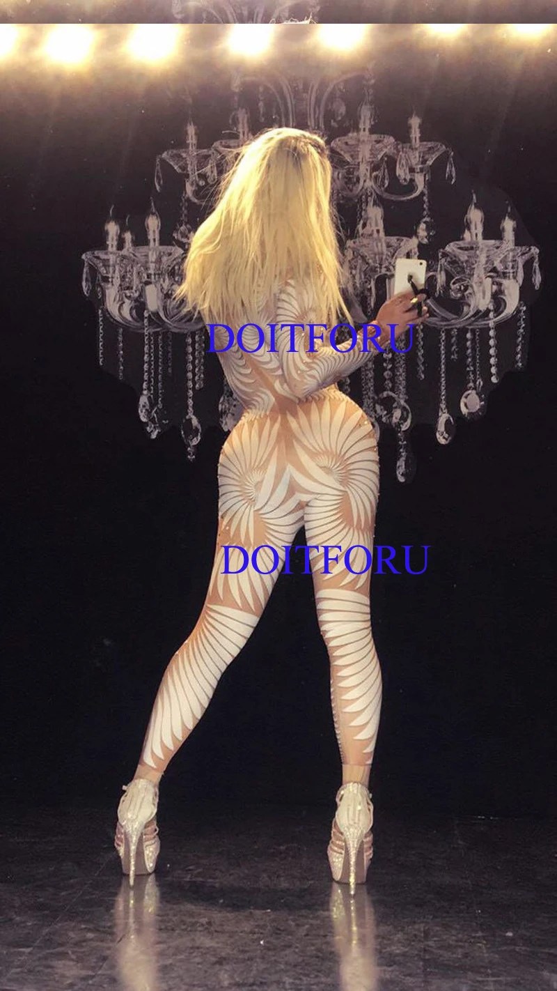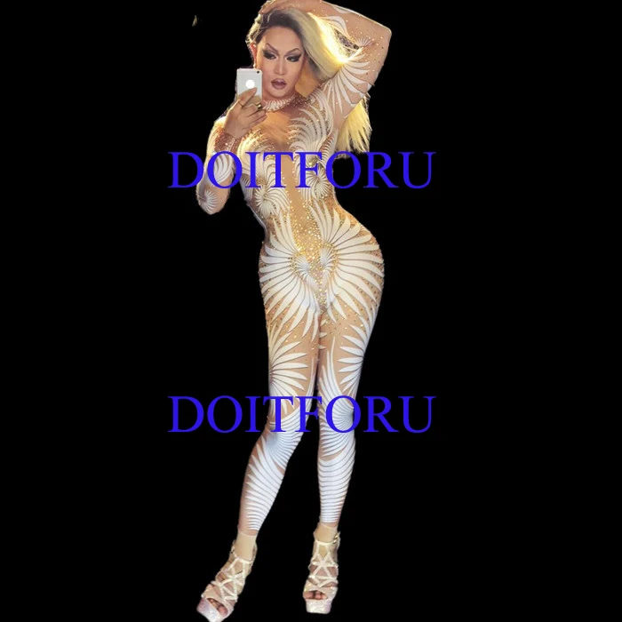 HIGH QUALITY Sexy Geometric patterns Jumpsuit Sparkly Stones Bodysuit Stage Wear Women's Celebrate Female Singer